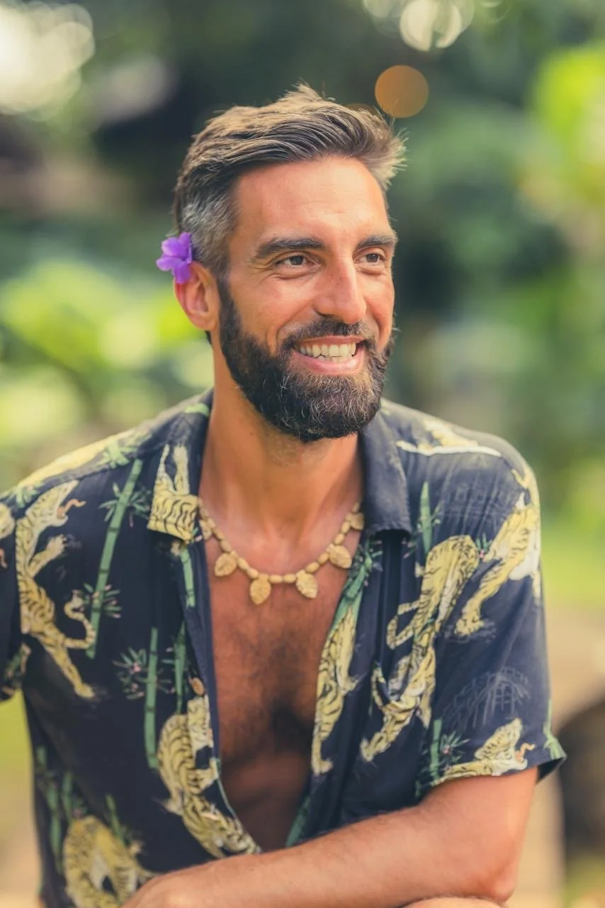 Il y est retourné de nombreuses fois afin de parfaire son instruction, apprenant les bases du Bhakti Yoga (« yoga de l’amour spirituel ») et approfondissant son enseignement avec ses maîtres, Sri Ananta das babaji et Pran Krishna das babaji. Après un enseignement auprès de Bernie Clark et Diana Batts, et Vinyasa Yoga avec Eoin Finn @Blissology en Bali, son approche pédagogique du Yoga est aujourd’hui à la fois anatomique et poétique : une alliance entre yoga, musique et la fluidité.